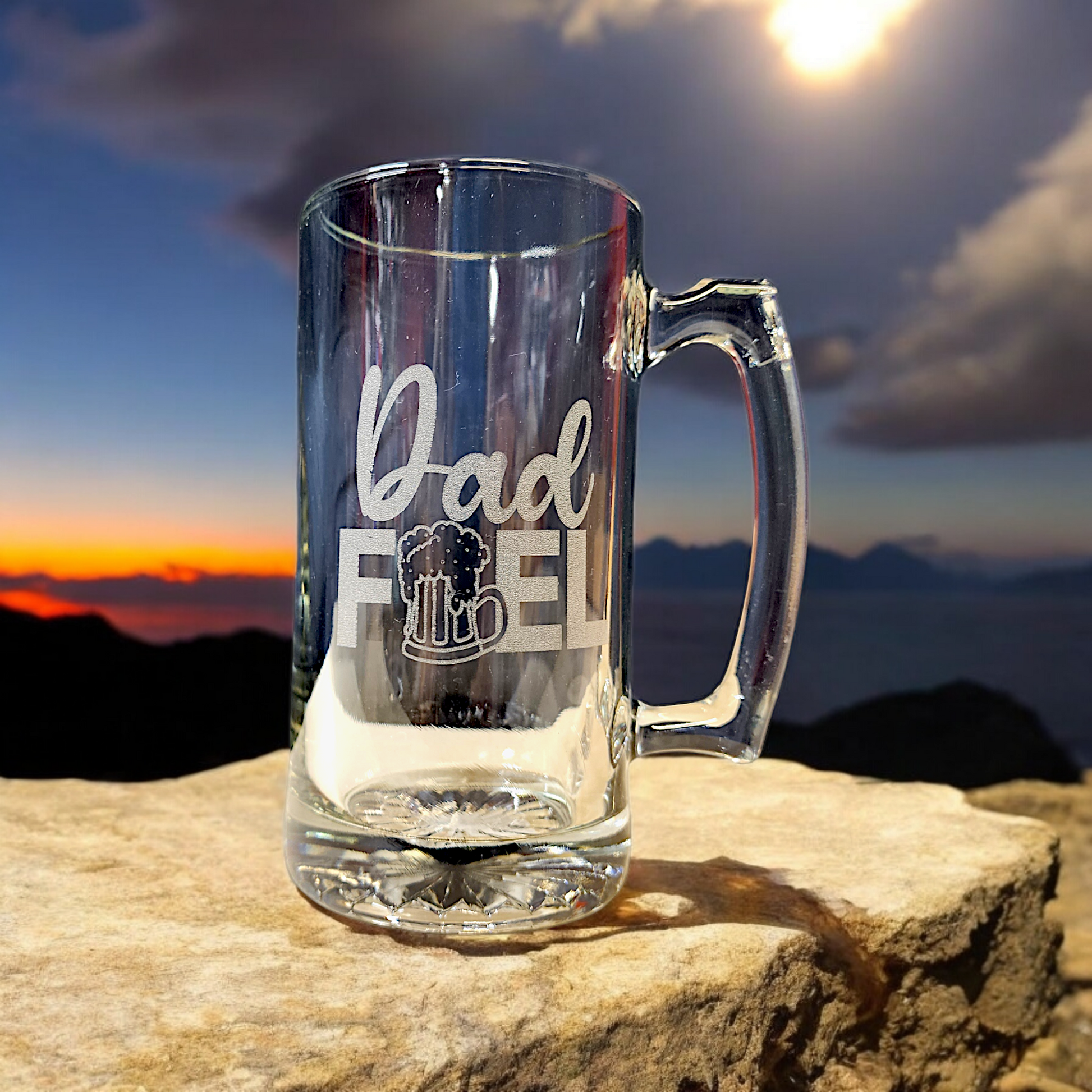 The perfect dad gift. "Dad fuel" Engraved 26.5oz glass mug with handle.