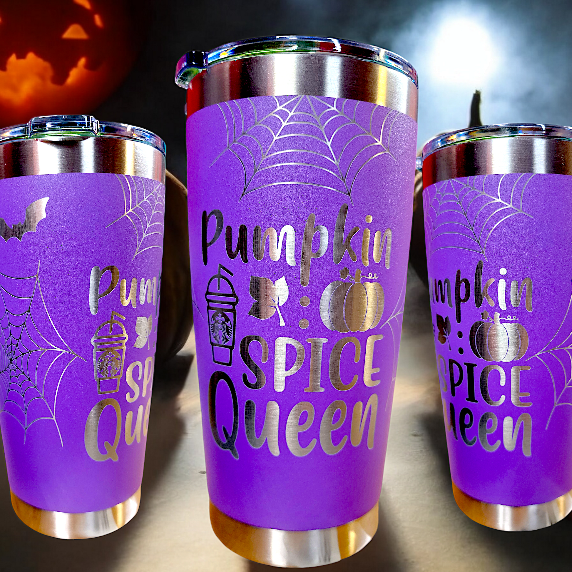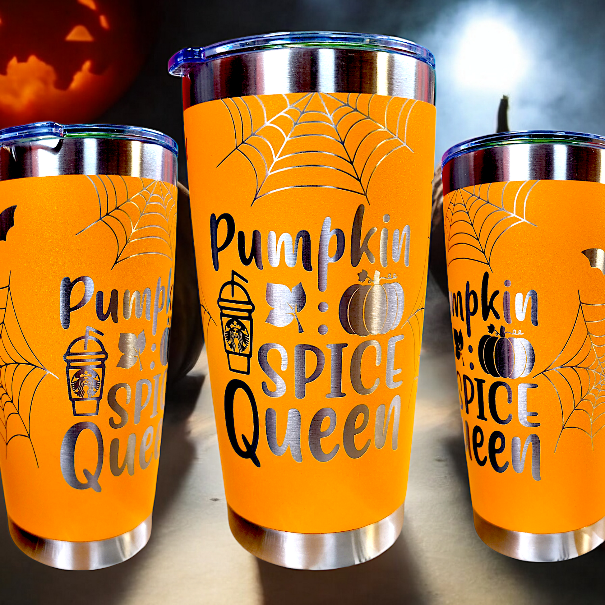 "Pumpkin Spice Queen" 20oz engraved insulated stainless tumbler with sealed lid. Great for hot or cold beverages.